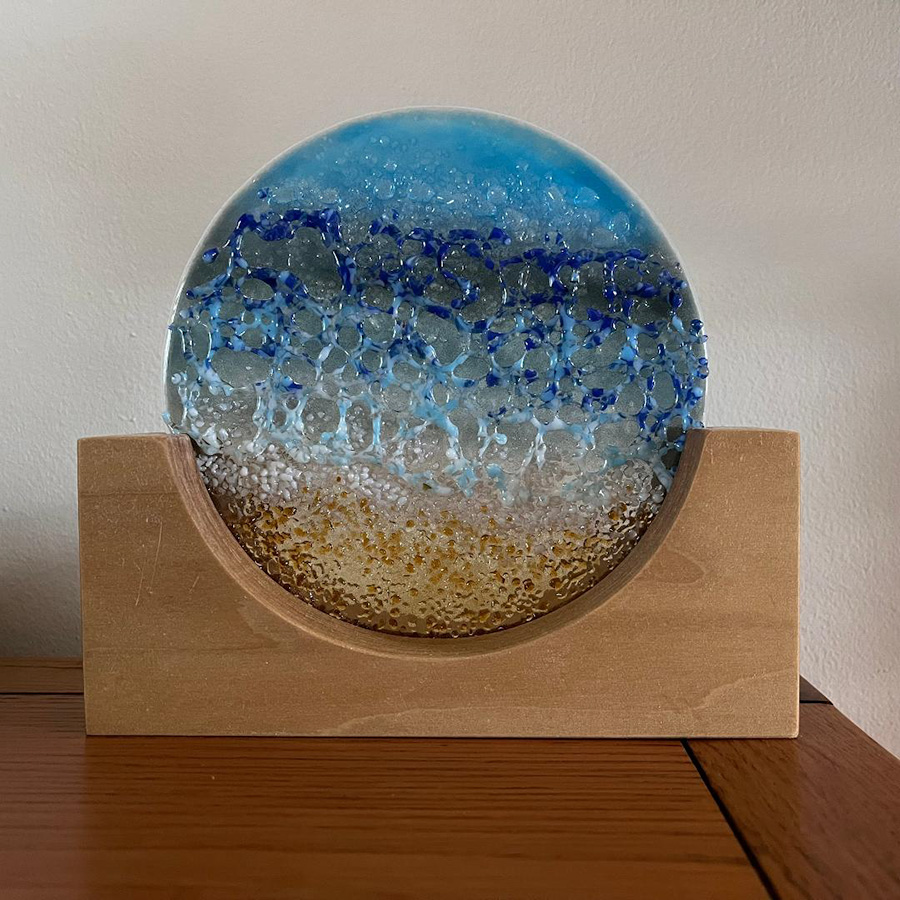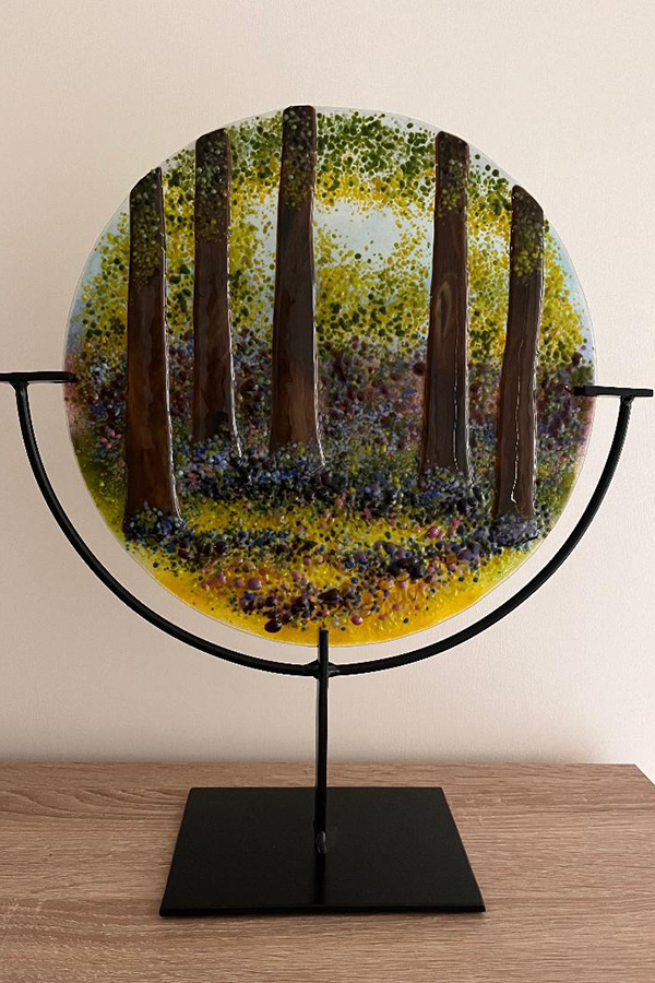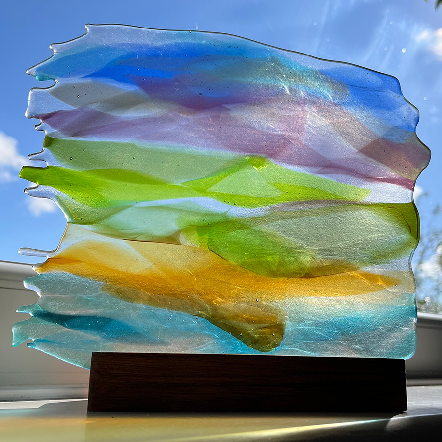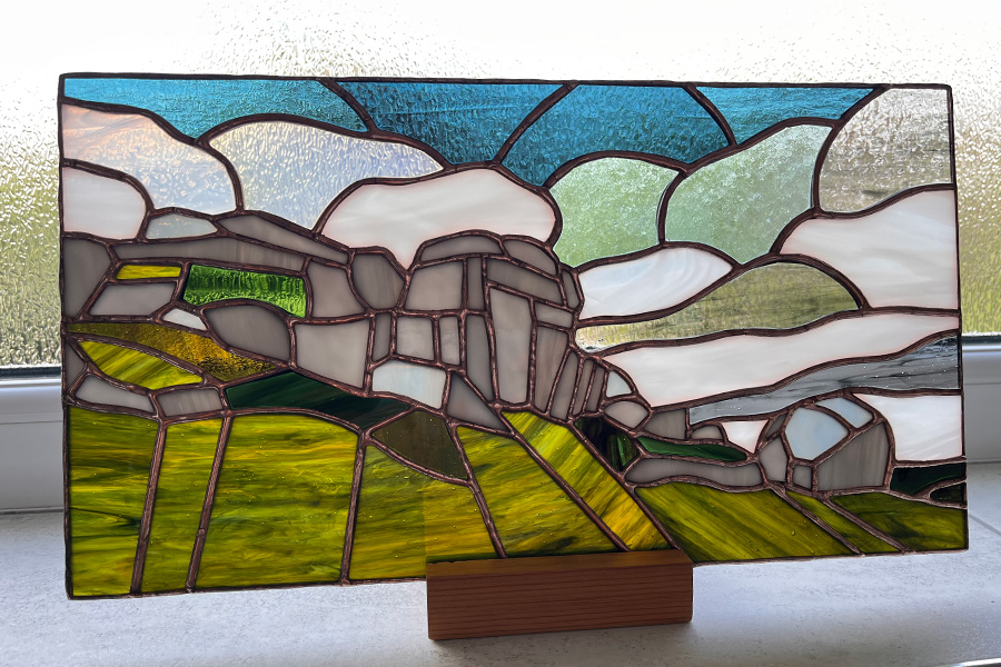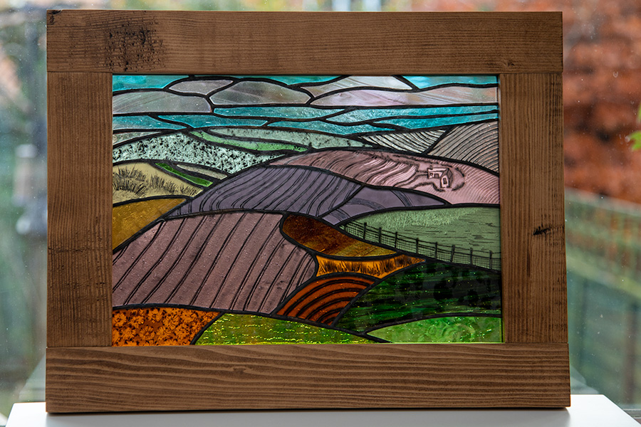 Inspired by the rolling landscape of the South Downs, coloured glass and stained glass painting.